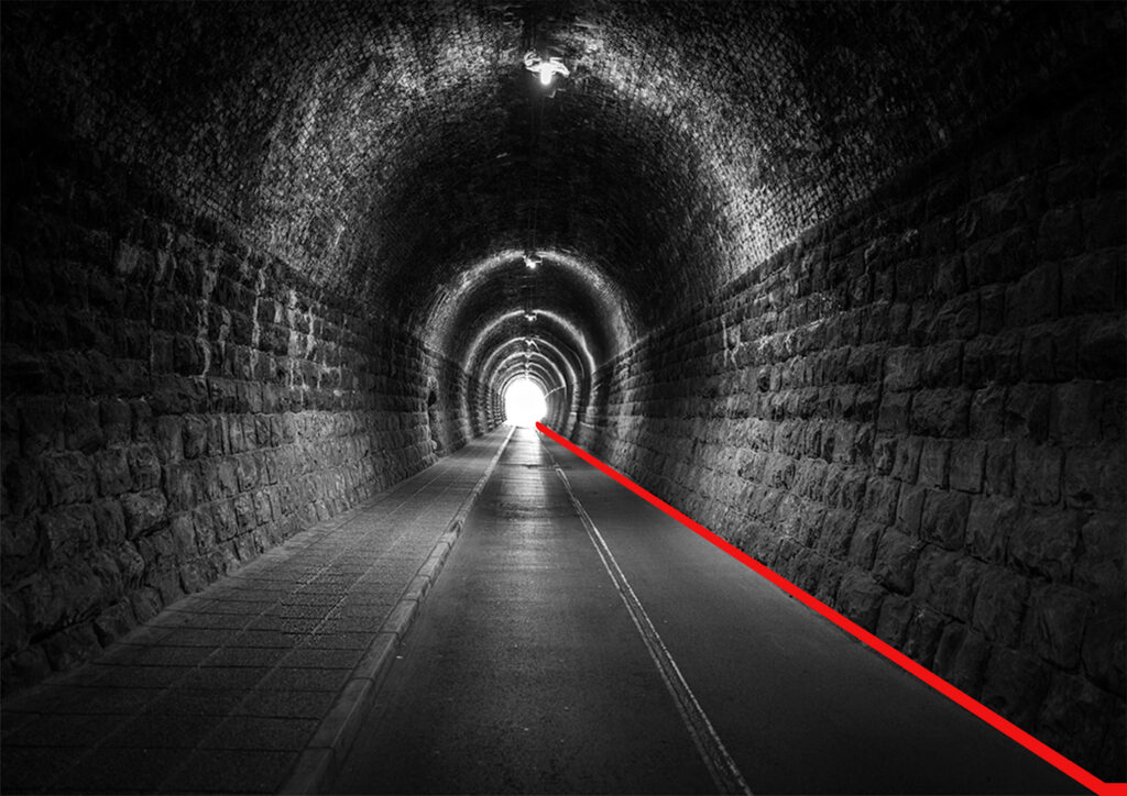 The tunnel, movement, and stepping along the line are symbols of an endless journey, a search for home and self.